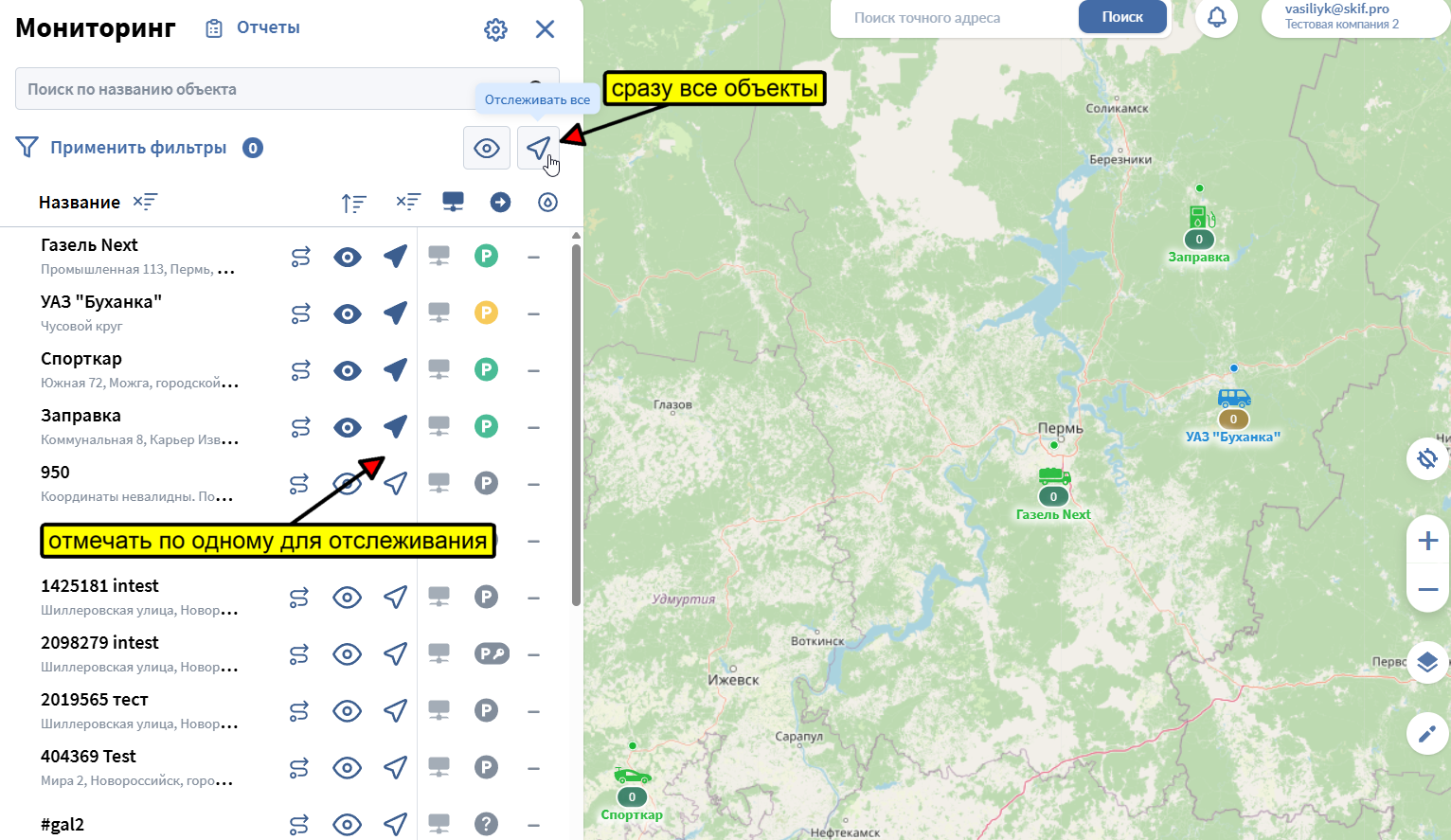 На главном экране появилась кнопка слежения за всеми видимыми объектами.