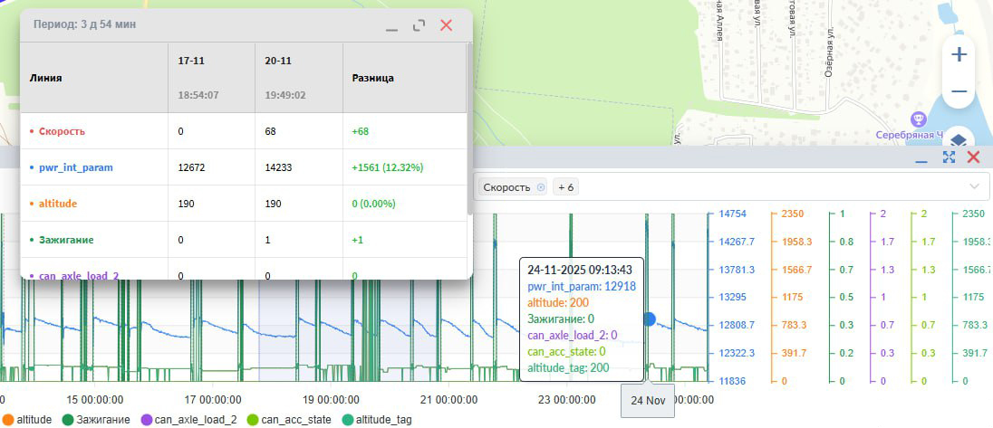 При работе с графиком очень часто возникают ситуации, когда нужно сравнить различные значения. Например, параметры «до» и «после» события: ДТП, остановки, заправки, перегрева, изменения маршрута, жалобы клиента и другие. Какие параметры можно сравнивать скорость и режим движения (движение/стоянка/холостой ход); уровень и расход топлива, состояние зажигания; CAN-параметры: обороты, нагрузка, температуры и др.; нагрузка на оси / вес (если есть датчики); температура в кузове/рефрижераторе и состояние дверей; питание терминала, качество связи и GPS. Конкретный набор зависит от оборудования и настроек. В SKIF.PRO для этого есть удобный инструмент. С его помощью можно быстрее анализировать данные, находить отклонения и принимать решения в реальном времени. Как это работает: Откройте трек и графики нужного объекта за интересующий период. Выберите первую точку (например, момент «до» события). Выберите вторую точку (момент «после» события). В окне сравнения посмотрите: значения параметров в точке 1 и точке 2; разницу в абсолютных величинах (км/ч, литры, °C и т.д.); разницу в процентах. Типовые сценарии Разбор ДТП: скорость, обороты, торможения до/после момента удара. Поиск сливов топлива: уровень топлива до и после стоянки или участка дороги. Проверка жалоб клиента: машина реально стояла или двигалась, открывался ли кузов. Диагностика техники: как менялись температура, нагрузка, напряжение до и во время проблемы. Такой подход фиксирует изменения в цифрах и упрощает аналитику, подготовку отчетов. Новый инструмент уже доступен всем пользователям платформы.