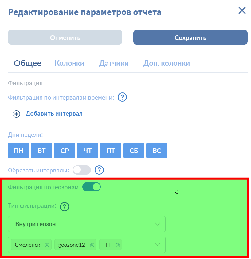 Теперь в шаблонах отчетов доступна фильтрация по геозонам.