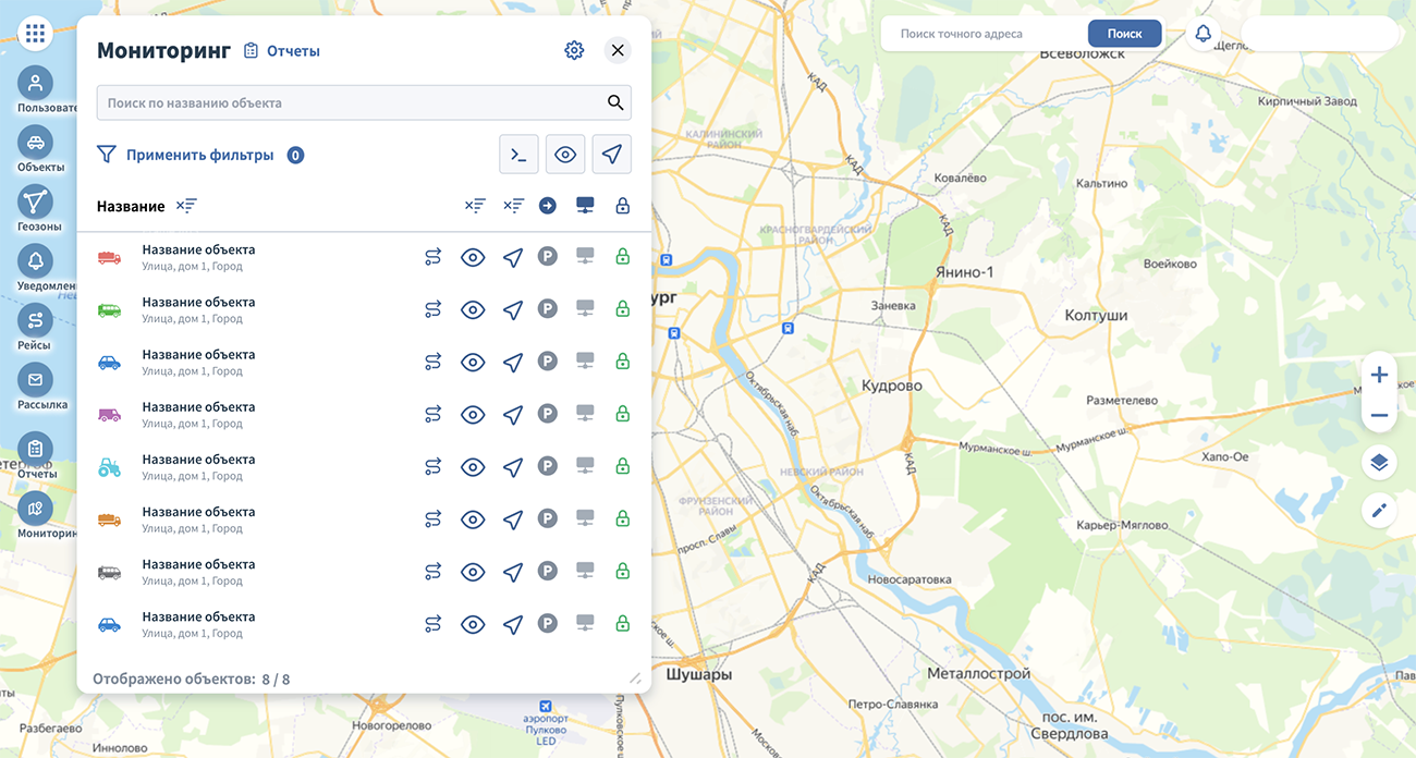 Одно из самых масштабных обновлений — обновление архитектуры модуля «Мониторинг». Цель — упростить логику работы с данными, тем самым ускорить отображение списков, отображение объектов на карте, повысить надежность.