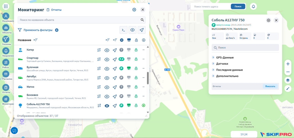 Пользователь может быстро переключаться между объектами и сразу видеть результат на карте. Это особенно важно при работе с большим количеством техники, когда скорость реакции интерфейса напрямую влияет на эффективность мониторинга.